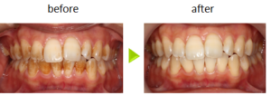 ナノ粒子ハイドロキシアパタイトを配合したペーストを使い、歯の表面についたミクロな傷を埋め、歯を補修します。歯の表面の滑らかさを回復し、プラークや色素が歯面につきにくくなります。コーヒーや紅茶などをよく召し上がる方は、着色のつきにくさをよりご実感頂けると思います。